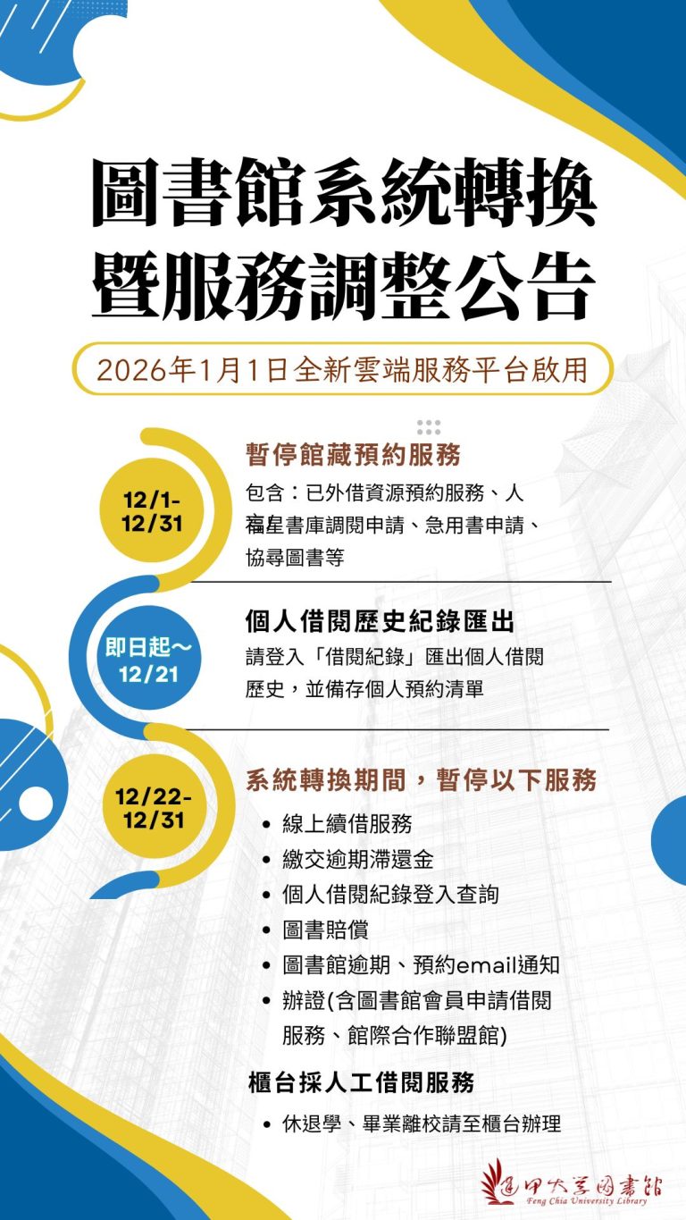2025/11/17(一) 開始跨寒假借書服務 Winter Break Book Borrowing Service from November 17, 2025 (Monday)