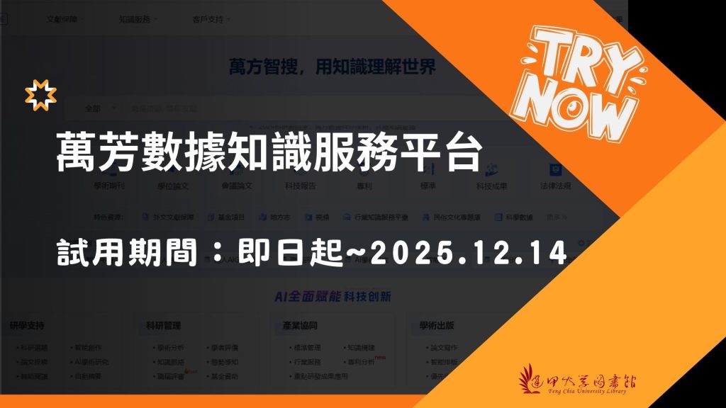 ※ 歡迎全校師生上網使用,如有任何問題與建議,請填寫試用資料庫意見調查表,以利本館了解您的需求與意見。