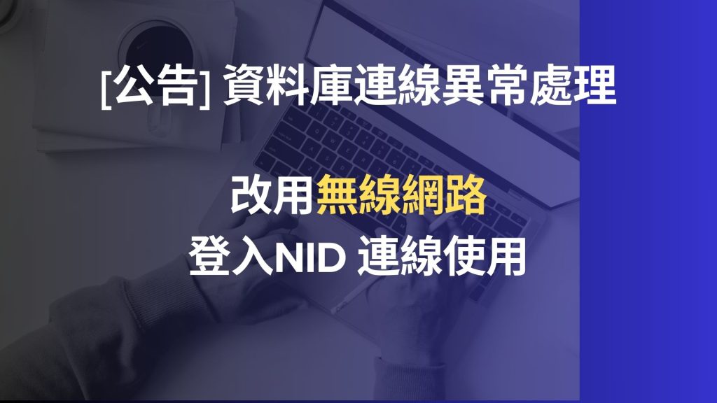 在轉換期間,如有師生在使用資料庫時無法正常連線或下載全文,請嘗試改用無線網路登入 NID 連線資料庫使用。