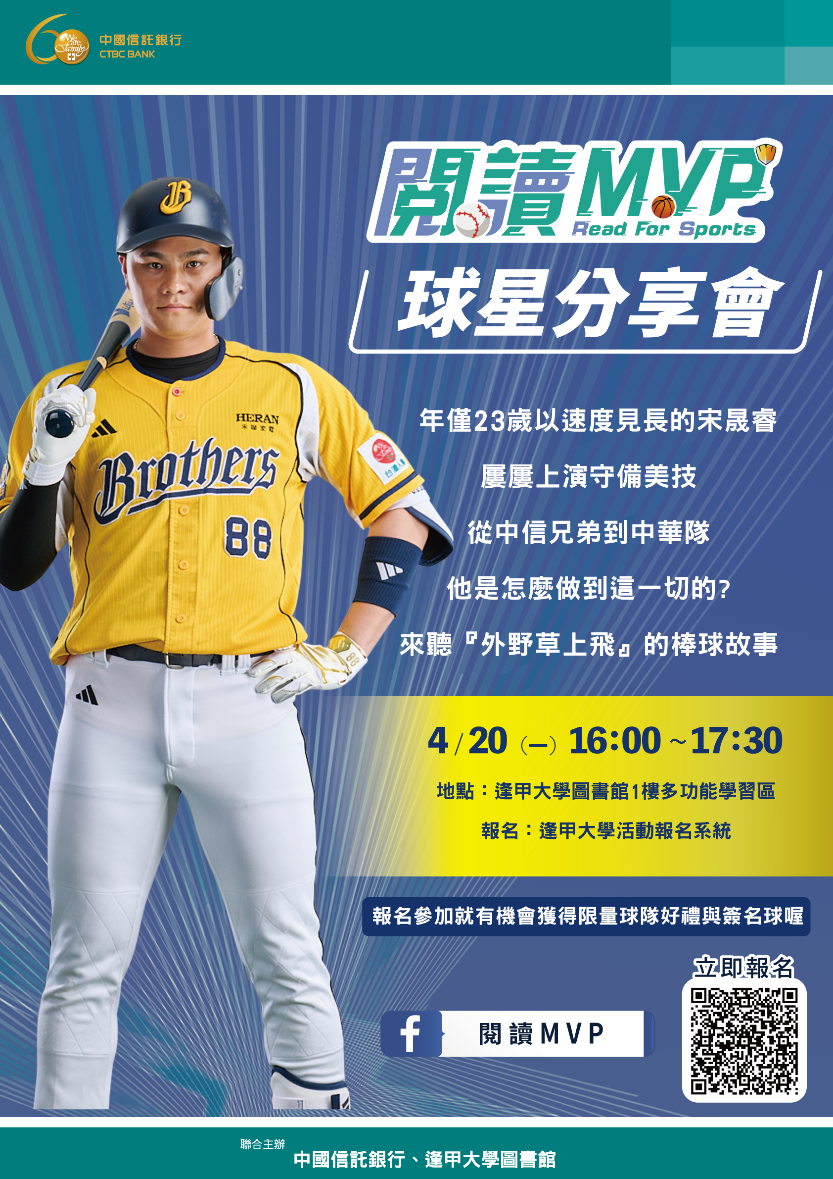 本館與中國信託合作,搭起閱讀和運動的橋樑,邀請大家一起愛閱讀、挺運動!