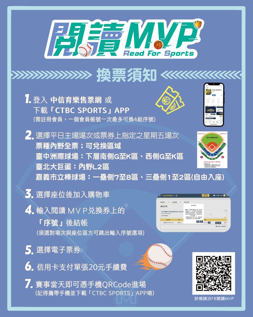 - 詳細使用方式操作可參考兌換券上說明事項與另外提供的兌換流程圖,兌換使用操作如遇問題可洽「閱讀 MVP」FB 粉專詢問。