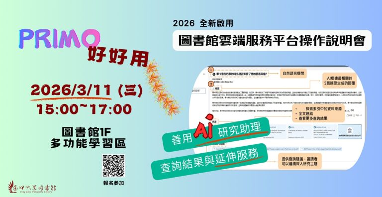 2026/1/1 全新圖書館雲端服務平台正式啟用,相關服務調整公告 (Official Launch of the New Cloud-Based Library Service Platform on January 1, 2026 – Service Adjustment Announcement)