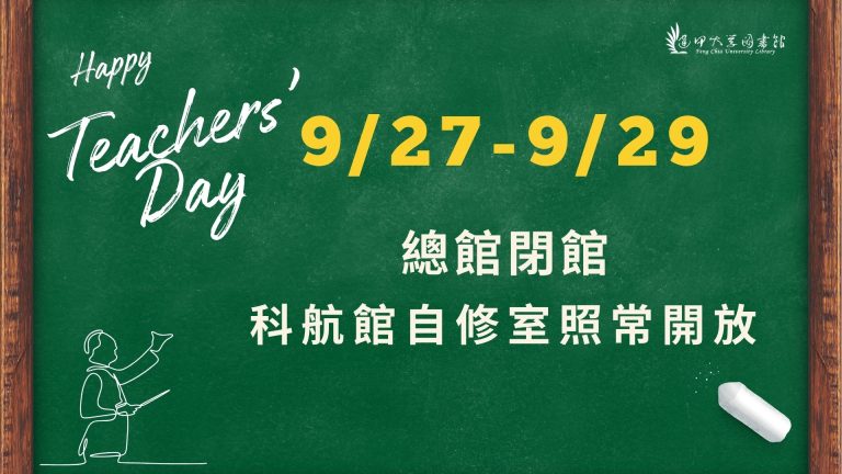 9/27-9/29 教師節連續假期開館時間公告(Library Hours : September 27-29)