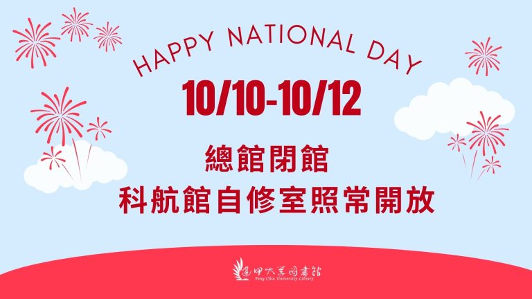 10/10 – 10/12 國慶連續假期開館時間公告(Library Hours : October 10 – 12)
